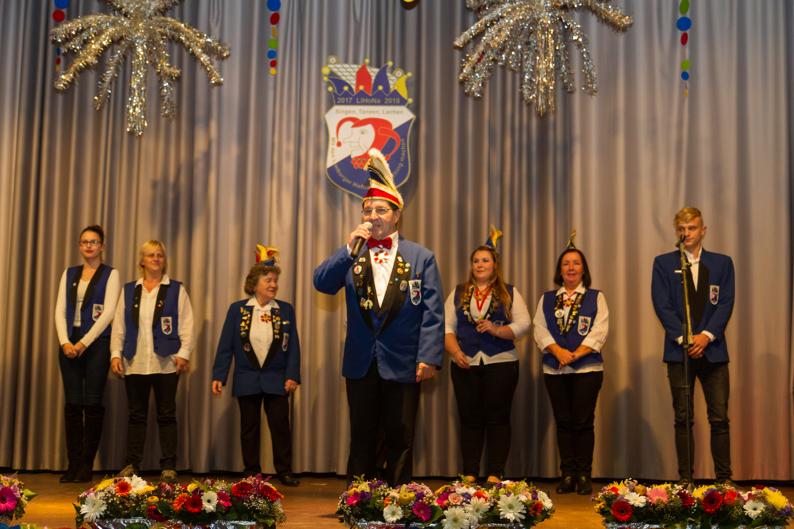 Nachdem am 11.11. die 5. Jahreszeit mit der Rathausstürmung eingeläutet wurde, folgte eine Woche danach das Ordensfest der LiHoNa, bei dem jeder Karnevalist einen Orden für die Kampagne erhielt. Die neue Kampagne der Limburger Hofnarren steht unter dem Motto „Singen, Tanzen, Lachen, mit der LiHoNa Fasching machen“. Zahlreiche befreundete Vereine machten den Limburger Hofnarren ihre Aufwartung und tauschten die Orden. Viele Prinzessinnen und Prinzen erwiesen uns die Ehre. Durch das Programm führte nicht nur der Präsident Michele, sondern auch die Ordensministerin Moni Lanotte und unsere ehemalige Prinzessin Livia I. Gemäß dem Motto "Singen, Tanzen, Lachen, ..." sorgten die hauseigenen DJs Alex und Fabian für eine ausgelassene Stimmung. Der Präsident der Limburger Hofnarren, Michele Lanotte, bedankt sich bei allen Helfern in der Küche sowie vor und hinter der Bühne für die gute Zusammenarbeit.