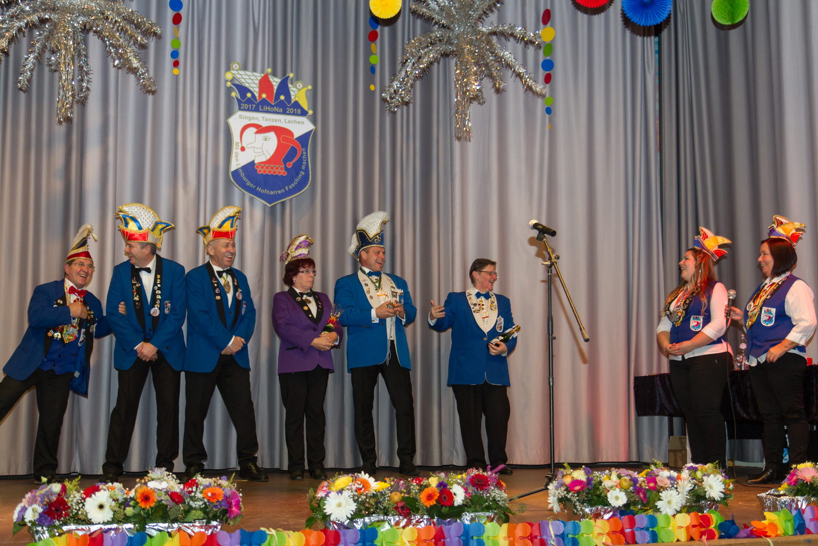 Nachdem am 11.11. die 5. Jahreszeit mit der Rathausstürmung eingeläutet wurde, folgte eine Woche danach das Ordensfest der LiHoNa, bei dem jeder Karnevalist einen Orden für die Kampagne erhielt. Die neue Kampagne der Limburger Hofnarren steht unter dem Motto „Singen, Tanzen, Lachen, mit der LiHoNa Fasching machen“. Zahlreiche befreundete Vereine machten den Limburger Hofnarren ihre Aufwartung und tauschten die Orden. Viele Prinzessinnen und Prinzen erwiesen uns die Ehre. Durch das Programm führte nicht nur der Präsident Michele, sondern auch die Ordensministerin Moni Lanotte und unsere ehemalige Prinzessin Livia I. Gemäß dem Motto "Singen, Tanzen, Lachen, ..." sorgten die hauseigenen DJs Alex und Fabian für eine ausgelassene Stimmung. Der Präsident der Limburger Hofnarren, Michele Lanotte, bedankt sich bei allen Helfern in der Küche sowie vor und hinter der Bühne für die gute Zusammenarbeit.